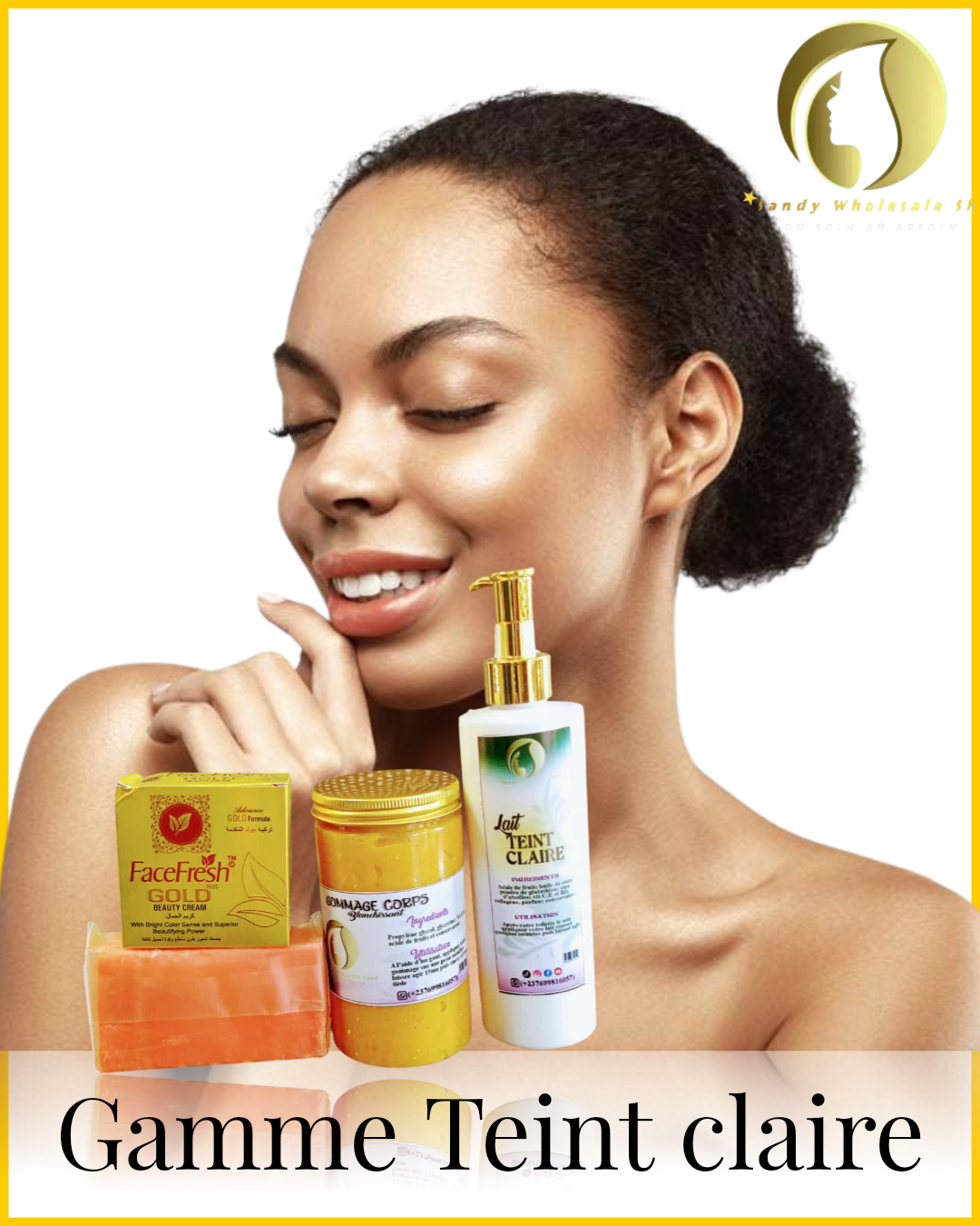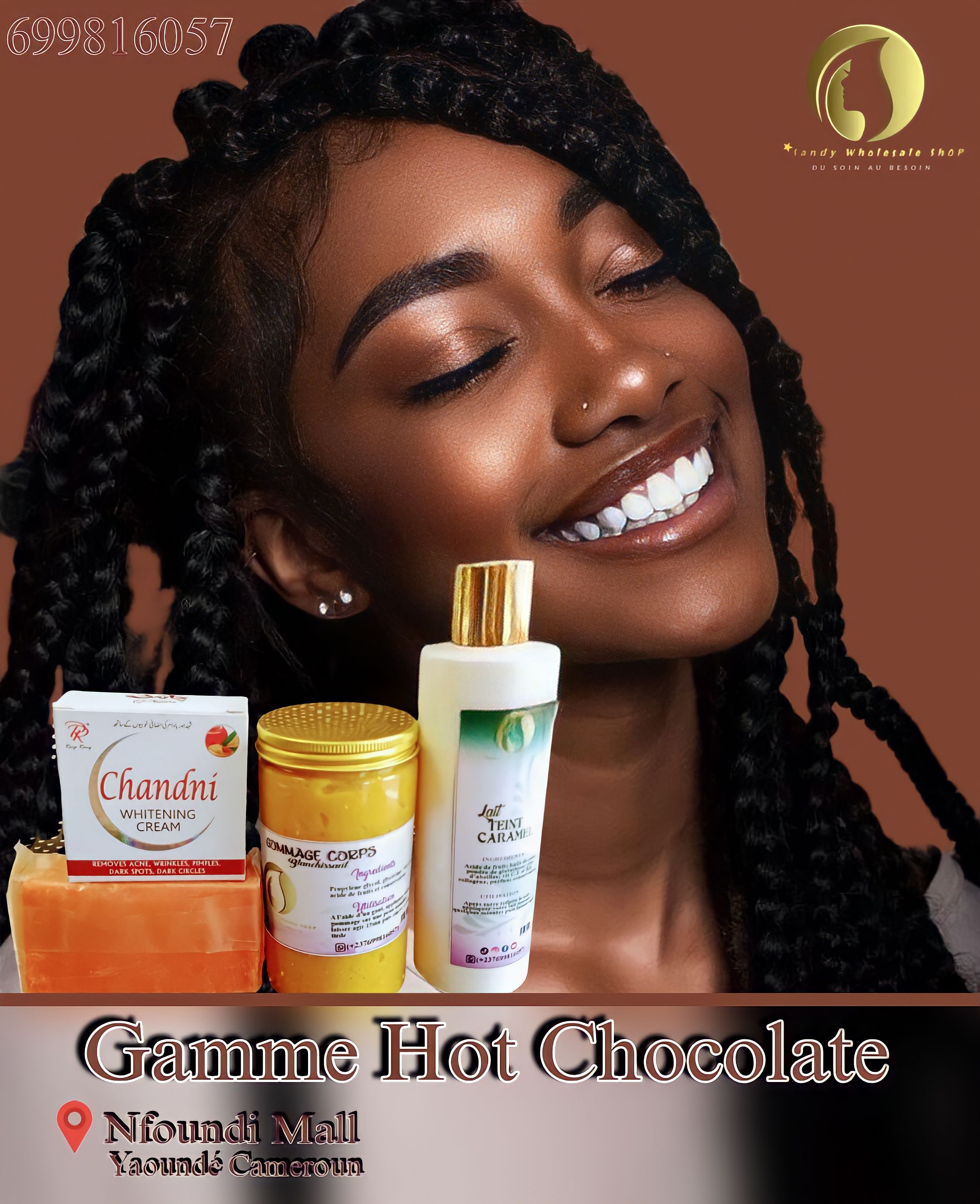 Sandy Wholesale Shop est votre guichet unique pour tous vos besoins en matière de soins de la peau ! Nous offrons une variété de produits, y compris des kits d'huiles de soin de peau blanchissantes, des kits d'huiles corporelles pour teint chocolat, des kits corporels pour peau claire, des gels de douche, des nettoyants et plus encore. Nos produits sont fabriqués avec des ingrédients naturels et sont conçus pour nourrir et protéger votre peau. Avec Sandy Wholesale Shop, vous pouvez être sûr que vous obtenez les meilleurs produits de soins de la peau pour votre argent.